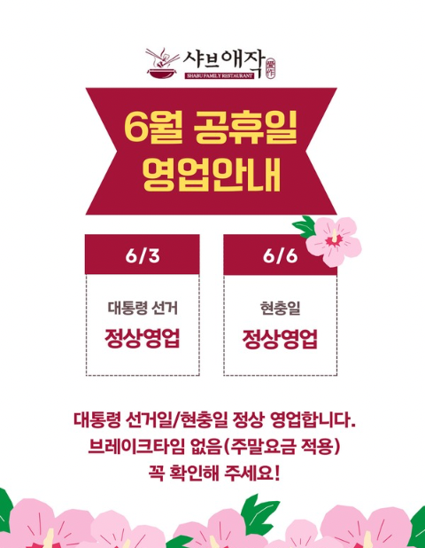 | 이전글 | 샤브애작 온천장점 그랜드오픈!! |