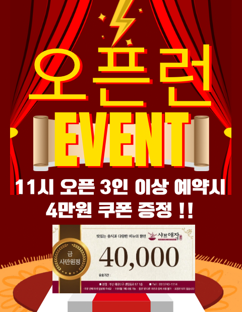 영수증 리뷰 작성시 4만원 쿠폰 증정!!